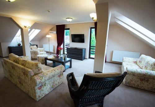 Все номера оборудованы мини-баром и телевизором с плоским экраном и кабельными каналами. В них также обустроен гостиный уголок. В распоряжении гостей собственная ванная комната с душем или ванной, бесплатными туалетно-косметическими принадлежностями и феном. С балкона открывается вид на сад и горы.