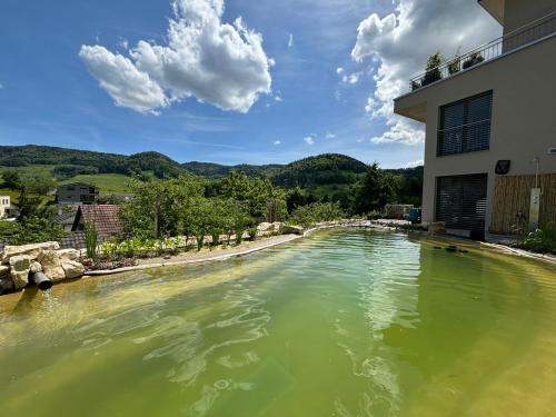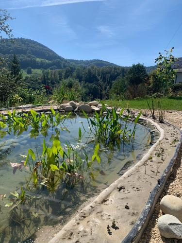 Chez Svanette B&B Villa Sonnglück — это отель типа «постель и завтрак» в городе Zullwil. Здесь есть открытый бассейн, сад и терраса, а также удобства для занятия водными видами спорта и принадлежности для барбекю. Из окон открывается вид на горы. Гостям предоставляется бесплатный Wi-Fi на всей территории. Также на территории имеется частная парковка.