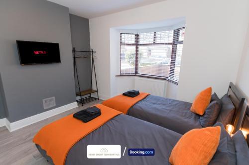 Award-Winning Four Bedrooms House, Parking, WiFi By Derby Short Term Rental Short Lets & Serviced Accommodation Derby — это дом для отпуска в городе Дерби. Трасса «Донингтон Парк» и Замок Ноттингема расположены в 23 км и 26 км соответственно. Среди удобств — сад. Из окон открывается вид на сад. В этом доме для отпуска есть бесплатная частная парковка, общий лаундж и установлен бесплатный Wi-Fi.