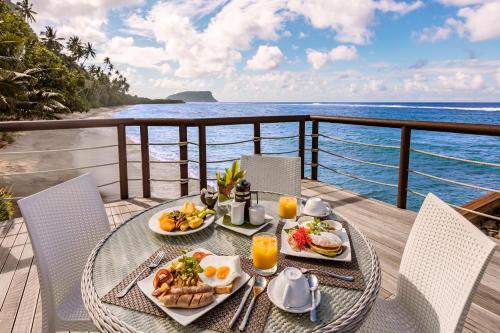The restaurant opens onto the beach and features a large poolside deck. It operates daily and serves Samoan and international cuisine. Your included breakfast consists of fresh fruit, cereals, yogurts, bread and jams.