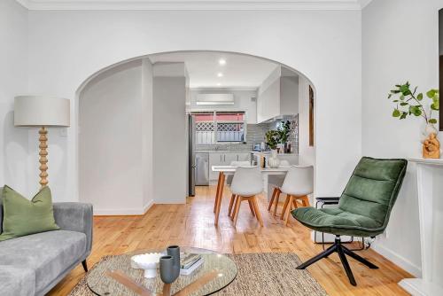 Ubytovanie Stylish Glenelg Stay with Alfresco & Comfort sa nachádza približne 17 min. chôdze od miesta The Beachouse, má patio a ponúka výhľad na záhradu. Ubytovanie sa nachádza 18 min. chôdze od miesta Pláž Glenelg Beach a hostia tu majú k dispozícii záhradu a bezplatné súkromné parkovisko.