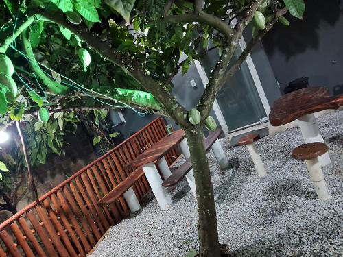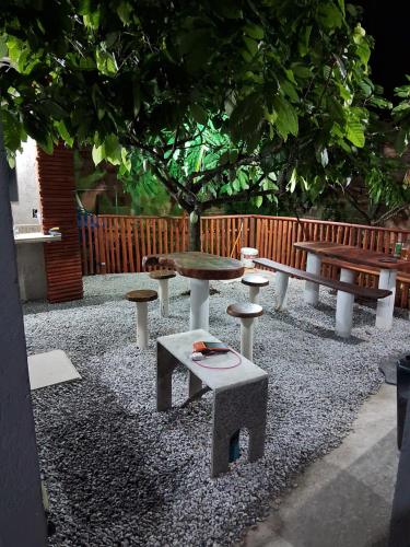 Tento dovolenkový dom s klimatizáciou má terasu s výhľadom na záhradu, spálňu (1) a kompletne vybavenú kuchyňu. Hostia tu môžu využívať TV s plochou obrazovkou.