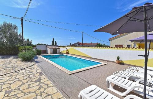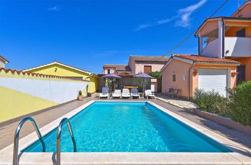 Ubytovanie Ferienhaus mit Privatpool für 16 Personen ca 200 qm in Galižana, Istrien Istrische Riviera sa nachádza v destinácii Galižana 7,8 km od miesta Amfiteáter Pula a 29 km od miesta Kostol sv. Eufémie (Rovinj). Hostia v ňom majú k dispozícii bezplatné Wi-Fi, klimatizáciu a terasu. Hostia ubytovaní v tomto dovolenkovom dome majú k dispozícii balkón.