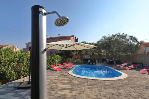 Ubytovanie Apartment with private pool sa nachádza v Sukošane a ponúka bezplatné Wi-Fi, výhľad na bazén, bezplatné bicykle, sezónny vonkajší bazén a fitnescentrum. Apartmán má súkromný bazén, záhradu a bezplatné súkromné parkovisko.
