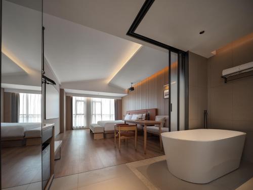 Každá izba v ubytovaní 桔作酒店 许昌东站胖东来天使城店 má šatníkovú skriňu, TV a súkromnú kúpeľňu. Sůčasťou vybavenia sú aj uteráky a posteľná bielizeň. V izbách ubytovania 桔作酒店 许昌东站胖东来天使城店 je k dispozícii súkromná kúpeľňa so sprchou a bezplatnými toaletnými potrebami a ponúkajú tiež výhľad na mesto.