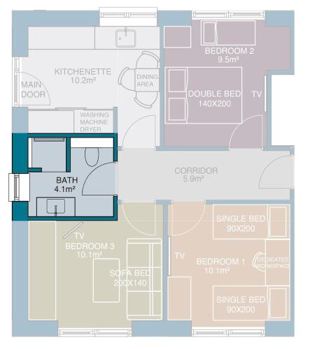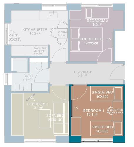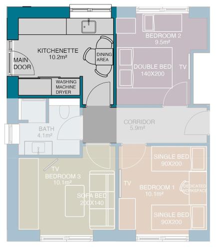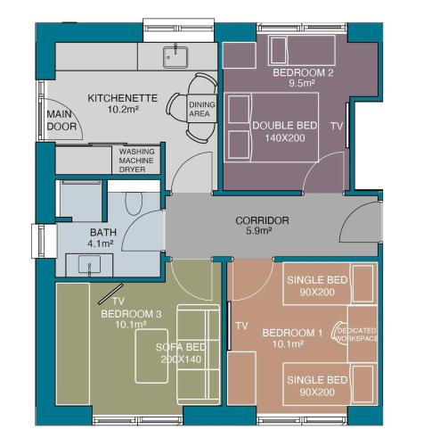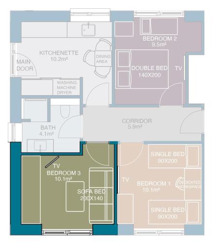 The air-conditioned apartment consists of 3 bedrooms, a fully equipped kitchenette and 1 bathroom. A flat-screen TV is available.