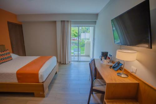 Rooms are simply styled with neutral colors and tile floors. Cable TV is included in every room at Coral Costa Caribe.