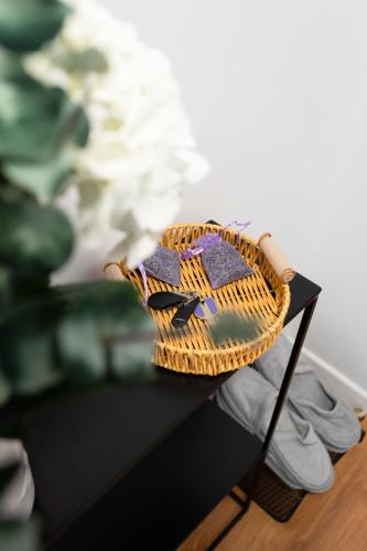 Tento apartmán má spálňu (1), obývaciu izbu, kompletne vybavenú kuchyňu s chladničkou a kávovarom a kúpeľňu (1) s vaňou a bezplatnými toaletnými potrebami. Súčasťou vybavenia sú uteráky a posteľná bielizeň.