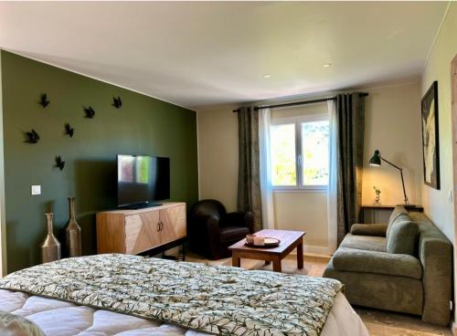Tento apartmán s klimatizáciou má terasu s výhľadom na záhradu, spálňu (1) a kompletne vybavenú kuchyňu. Hostia tu môžu využívať TV s plochou obrazovkou.