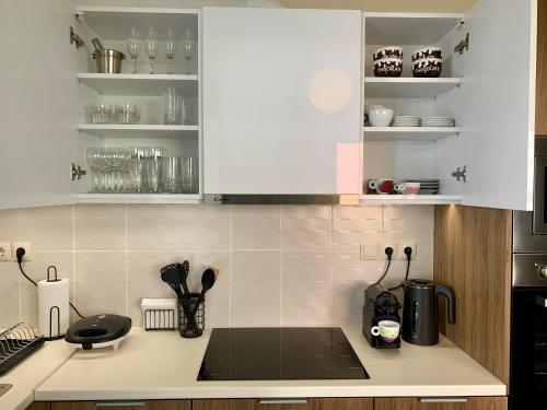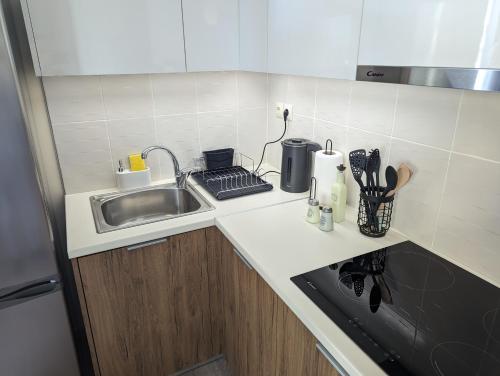 Tento apartmán s klimatizáciou má spálňu (1), obývaciu izbu, kompletne vybavenú kuchyňu s chladničkou a kávovarom a kúpeľňu (1) so sprchou a bezplatnými toaletnými potrebami. Súčasťou vybavenia sú uteráky a posteľná bielizeň.