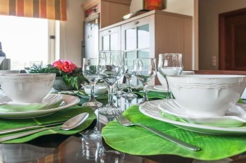 Táto vila s klimatizáciou má viacero spální (4), obývaciu izbu, kompletne vybavenú kuchyňu s chladničkou a kávovarom a viacero kúpeľní (3) so sprchou a sušičom vlasov. Kúpeľňa má vaňu.
