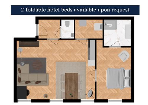 Tento apartmán má spálňu (1), obývaciu izbu a kompletne vybavenú kuchyňu s chladničkou a umývačkou riadu.