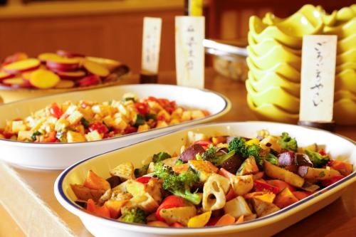 Breakfast and dinner include a Japanese and Western buffet, and are served at the dining hall. Nishiki also serves Japanese meals, and refreshments are available at the bar and lounge.