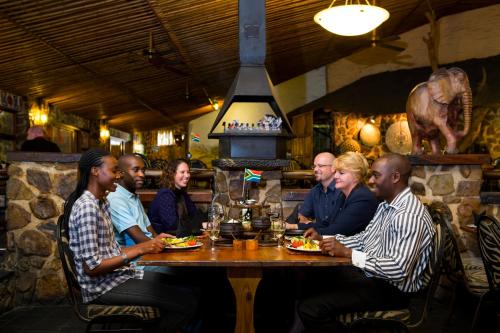 Carnivore Restaurant is open for lunch and dinner and specializes in game and domestic meats. Vegetarian dishes are also available. Guests can enjoy a traditional barbecues or buffet food around a campfire at the Lapa. Misty Hills also has a coffee shop for light snacks.