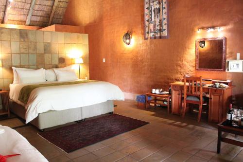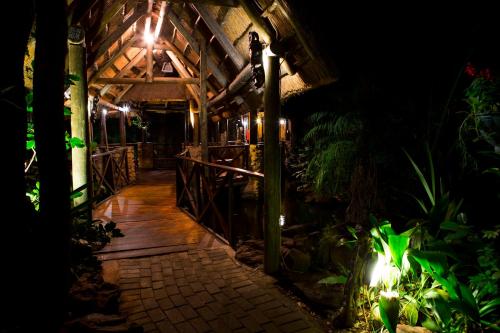 Surrounded by lush gardens and natural forests, the elegantly furnished and stone-built thatched rooms and suites are all equipped with satellite TV, a telephone, and tea- and-coffee making facilities. The private bathrooms are fitted with a bath and shower.