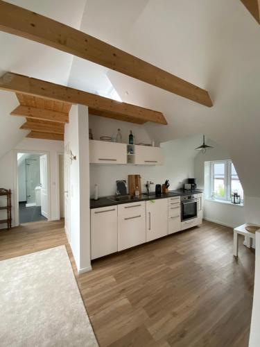 Ubytovanie Charmantes Haus mit zwei Ferienwohnungen und großem Garten in Aventoft - Enjoy! hosťom ponúka terasu, výhľad na záhradu, priestor na posedenie, satelitnú TV s plochou obrazovkou, kompletne vybavenú kuchyňu, v ktorej môžu využívať chladničku a umývačku riadu, ako aj súkromnú kúpeľňu, kde majú k dispozícii sprchu a sušič vlasov. K dispozícii je rúra, sporák a sendvičovač, ako aj kávovar a rýchlovarná kanvica.