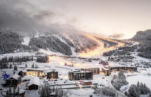 Ubytovanie New! Apartment Fjellandsbyen Hemsedal Ski&bike sa nachádza približne 45 km od miesta Golsfjellet. Ponúka výhľad na hory a má patio a rýchlovarnú kanvicu. Tento apartmán ponúka aj reštauráciu a terasu.
