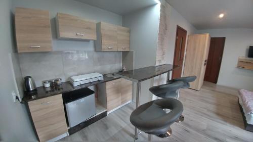 Niektoré ubytovacie jednotky majú terasu s výhľadom na záhradu, kompletne vybavenú kuchynku a súkromnú kúpeľňu so sprchou.