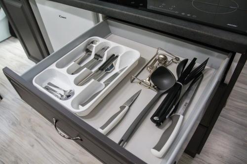 Tento apartmán má balkón, spálňu (1), obývaciu izbu a dobre vybavenú kuchynku s chladničkou a umývačkou riadu. Hostia tu môžu využívať TV s plochou obrazovkou.