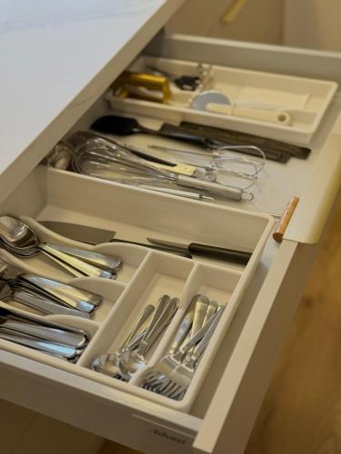 Tento apartmán má spálňu (1), obývaciu izbu, kompletne vybavenú kuchyňu s chladničkou a kávovarom a kúpeľňu (1) so sprchou a sušičom vlasov. Súčasťou vybavenia sú uteráky a posteľná bielizeň.