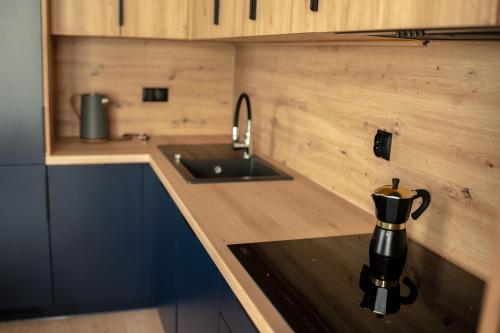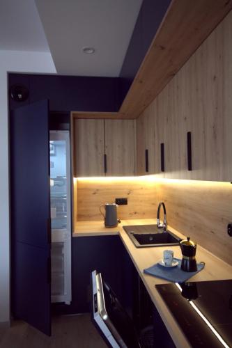 Tento apartmán s klimatizáciou má spálňu (1), obývaciu izbu, kompletne vybavenú kuchynku s chladničkou a rýchlovarnou kanvicou a kúpeľňu (1) so sprchou a bezplatnými toaletnými potrebami. Súčasťou vybavenia sú uteráky a posteľná bielizeň.