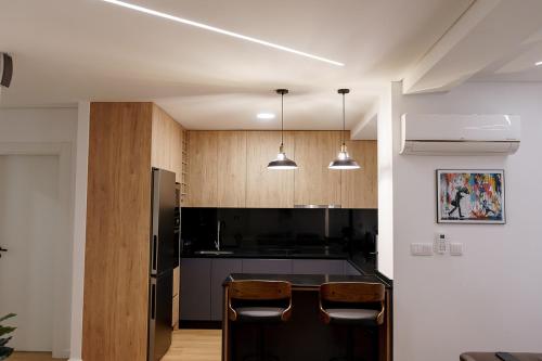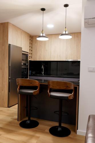 Tento apartmán s klimatizáciou má viacero spální (2), obývaciu izbu, kompletne vybavenú kuchyňu s chladničkou a kávovarom a kúpeľňu (1) so sprchou a sušičom vlasov.