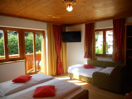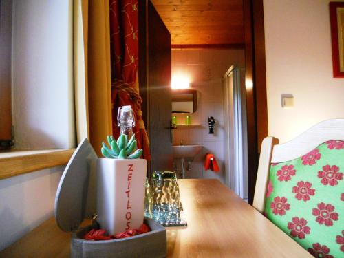 Každá izba v ubytovaní Pension Zeitlos má písací stôl, TV s plochou obrazovkou a súkromnú kúpeľňu. Sůčasťou vybavenia sú aj uteráky a posteľná bielizeň. V izbách ubytovania Pension Zeitlos je k dispozícii bezplatné Wi-Fi a súkromná kúpeľňa so sprchou a bezplatnými toaletnými potrebami a niektoré izby majú výhľad na hory. Všetky izby majú šatníkovú skriňu.