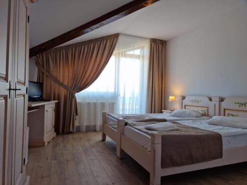 All rooms are en-suite and offer view over Bucegi and Piatra Craiului Mountains. They are also equipped with a work desk and cable TV.
