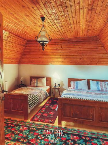 Každá izba v ubytovaní Casa din Susani má šatníkovú skriňu. V izbách ubytovania Casa din Susani je k dispozícii bezplatné Wi-Fi a súkromná kúpeľňa so sprchou a bezplatnými toaletnými potrebami a niektoré izby zahŕňajú balkón. Všetky ubytovacie jednotky v ubytovaní Casa din Susani majú súkromnú kúpeľňu a súčasťou vybavenia je posteľná bielizeň.
