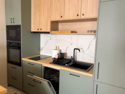 Tento apartmán s klimatizáciou má spálňu (1), obývaciu izbu, kompletne vybavenú kuchyňu s chladničkou a kávovarom a kúpeľňu (1) s vaňou alebo sprchou a sušičom vlasov. Súčasťou vybavenia sú uteráky a posteľná bielizeň.