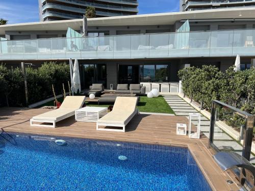 Ubytovanie Bungalow de lujo 5* 1ª LÍNEA Playa San Juan sa nachádza na pláži v Alicante len niekoľko krokov od miesta Pláž Playa de San Juan. Hostia tu majú k dispozícii fitnescentrum, záhradu, bar a bezplatné Wi-Fi. Na mieste je k dispozícii reštaurácia a bezplatné súkromné parkovisko.