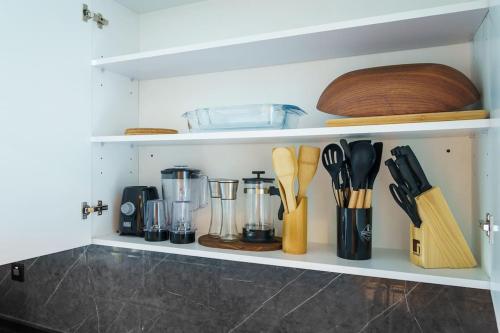 Tento apartmán s klimatizáciou má samostatnú spálňu (1), obývaciu izbu, kompletne vybavenú kuchyňu a kúpeľňu (1). Hostia tu môžu využívať TV s plochou obrazovkou.