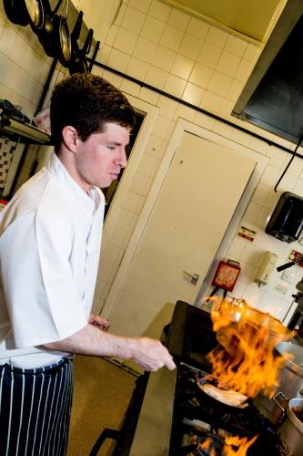 The restaurant serves traditional food, and is open for lunch and evening meals. A full cooked breakfast is available each morning in the eating area, which also has a flat-screen TV.