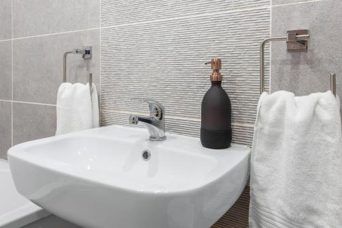 Tento apartmán s viacerými spálňami (2) má obývaciu izbu s TV s plochou obrazovkou, kompletne vybavenú kuchyňu a kúpeľňu (1).