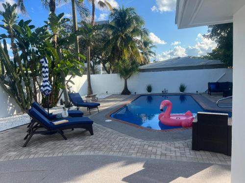 Ubytovanie Azure Dreams House Heated Pool Modern Design sa nachádza v destinácii Pompano Beach a ponúka bezplatné Wi-Fi, výhľad na bazén, vonkajší bazén, záhradu a terasu. Toto ubytovanie má súkromný bazén a bezplatné súkromné parkovisko.