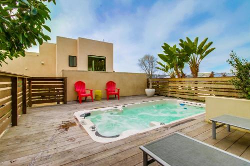 Hostia ubytovania Sunset Cliffs Modern Luxury Estate w Ocean Views, Oversized Spa, AC, Yard! môžu využívať vírivku.
