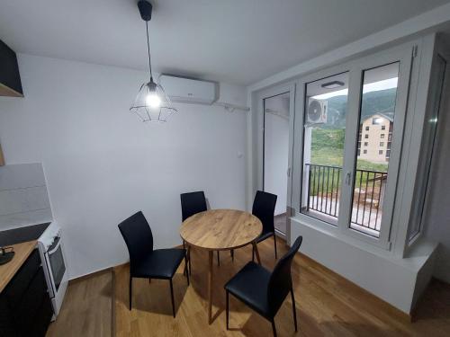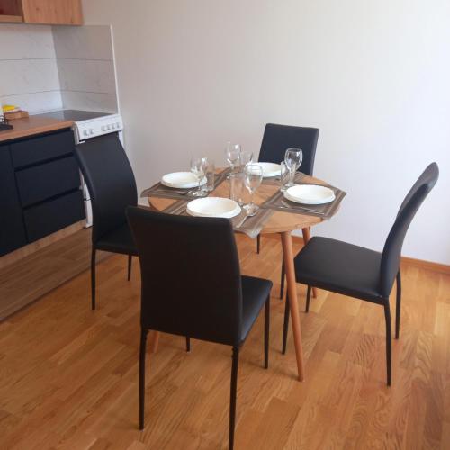 Tento apartmán s klimatizáciou má spálňu (1), obývaciu izbu, kompletne vybavenú kuchyňu s chladničkou a rýchlovarnou kanvicou a kúpeľňu (1) so sprchou a bezplatnými toaletnými potrebami. Súčasťou vybavenia sú uteráky a posteľná bielizeň.