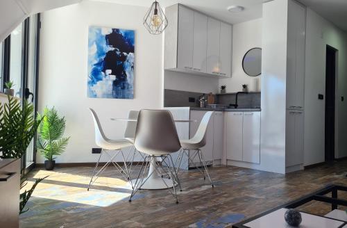 Tento apartmán so spálňou (1) má obývaciu izbu TV s plochou obrazovkou a kompletne vybavenú kuchyňu.