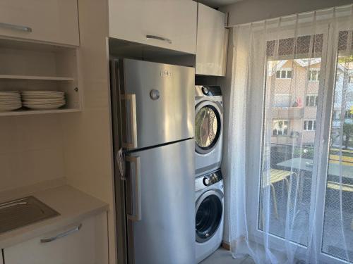 The apartment provides guests with a balcony, mountain views, a seating area, cable flat-screen TV, a fully equipped kitchen with a dishwasher and an oven, and a private bathroom with a bath or shower and a hair dryer. A microwave, a toaster and fridge are also available, as well as a coffee machine and a kettle. At the apartment complex, every unit is fitted with bed linen and towels.