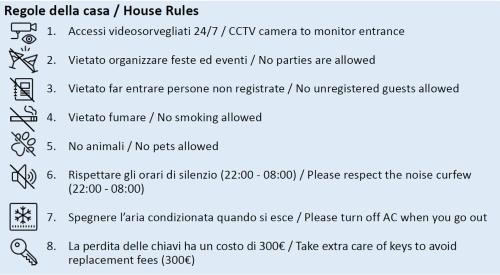 Tento apartmán s klimatizáciou má viacero spální (3), obývaciu izbu, kompletne vybavenú kuchyňu s chladničkou a kávovarom a viacero kúpeľní (3) s bidetom a sprchou. Súčasťou vybavenia sú uteráky a posteľná bielizeň.