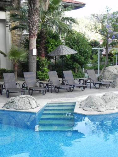 Ubytovanie Sun Blue Apart Hotel sa nachádza 3 min. chôdze od miesta Pláž Icmeler. Hostia tu majú k dispozícii reštauráciu, sezónny vonkajší bazén, záhradu a spoločenskú miestnosť. Hostia môžuv celom ubytovaní využívať bezplatné Wi-Fi.