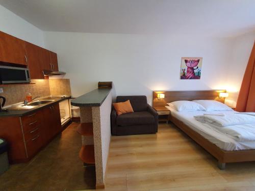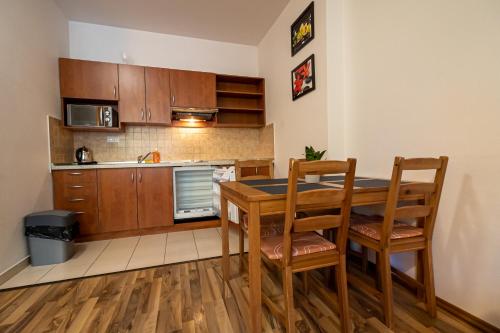 Each apartment comes with modern furnishings and a seating area with TV, a private bathroom with a shower, a fully equipped kitchenette with a dining table. Most units also offer a balcony.