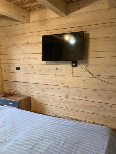 The spacious holiday home with a terrace and lake views has 1 bedroom, a living room, a flat-screen TV, an equipped kitchen with a microwave and a toaster, and 1 bathroom with a hot tub. The accommodation offers a fireplace.