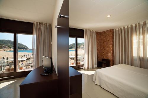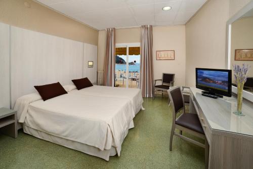 The Hotel Capri is located in front of the large beach “Platja Gran” of Tossa de Mar, right in the center of the Paseo Marítimo. It has rooms overlooking the sea, situated in a privileged position in front of the beach. Other rooms have views of the town. All rooms have a TV with satellite channels, a private bathroom with a shower or bathtub, a hairdryer, and a fridge.