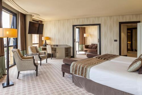 The Hotel Bahía’s spacious rooms have plasma-screen satellite TV and a minibar. All rooms offer views of either the sea or Santander Cathedral. The marble bathrooms come with an amenities set and hairdryer.