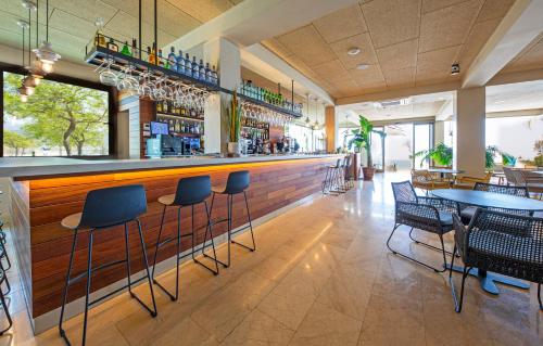The lounge and bar area at Hotel Maritim enjoy views over the Bay of Roses. A bar service is available at the poolside terrace, and the restaurant serves a range of local and international dishes.