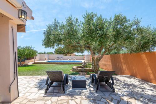 The villa features 3 bedrooms, 2 bathrooms, bed linen, towels, a TV, a fully equipped kitchen, and a terrace with sea views. The property offers garden views.