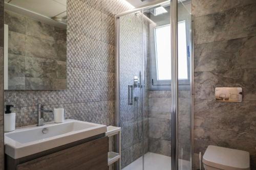 The spacious apartment features 2 bedrooms, a flat-screen TV, a fully equipped kitchen with a dishwasher and an oven, a washing machine, and 2 bathrooms with a shower. Guests can take in the ambience of the surroundings from an outdoor dining area.