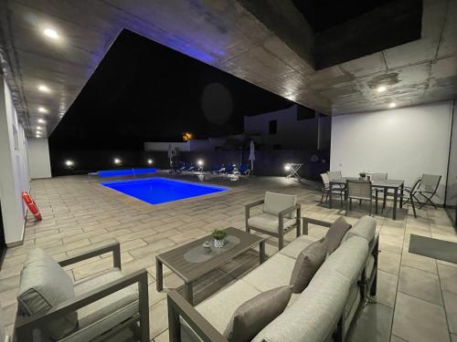 Situated in La Costa and only 10 km from Campesino Monument, Eslanzarote Eco Villa Tony, heated pool, jacuzzi, Sat tv, Super wifi features accommodation with mountain views, free WiFi and free private parking. With pool views, this accommodation offers a balcony and a swimming pool. The accommodation provides a shuttle service, while a bicycle rental service is also available.