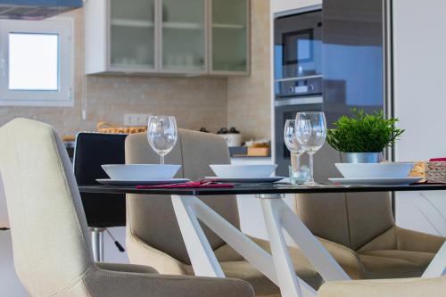 The villa features 3 bedrooms, 2 bathrooms, bed linen, towels, a flat-screen TV with satellite channels, a dining area, a fully equipped kitchen, and a terrace with sea views. The air-conditioned unit at the property features a shower and a dressing room. The property has an outdoor dining area.